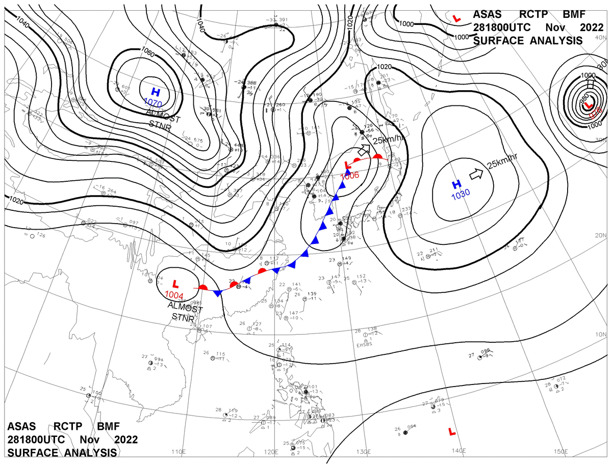 2022/11/28 18z sfcmap 天氣圖