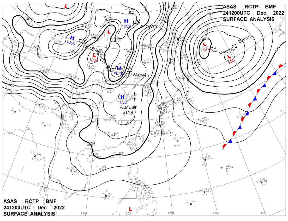 2022/12/24 12z sfcmap 天氣圖