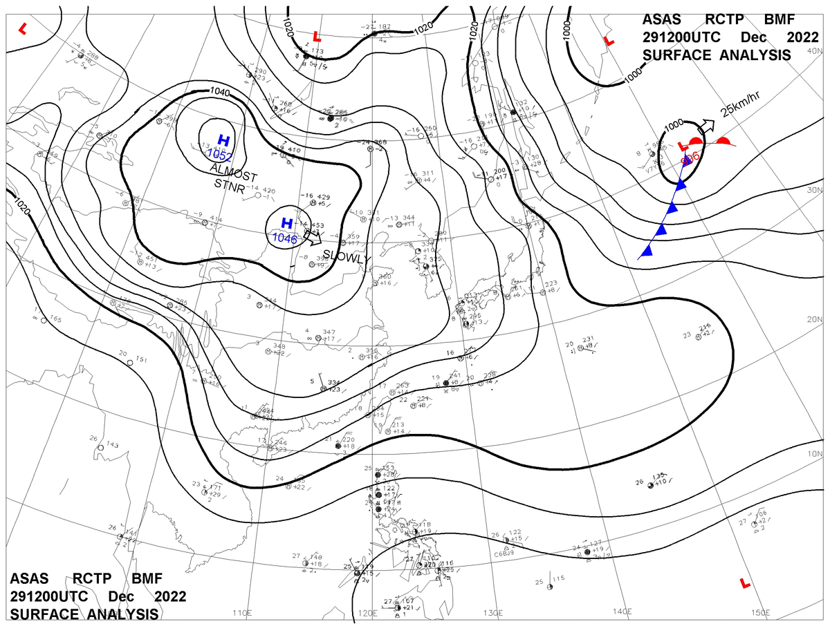 2022/12/29 12z sfcmap 天氣圖