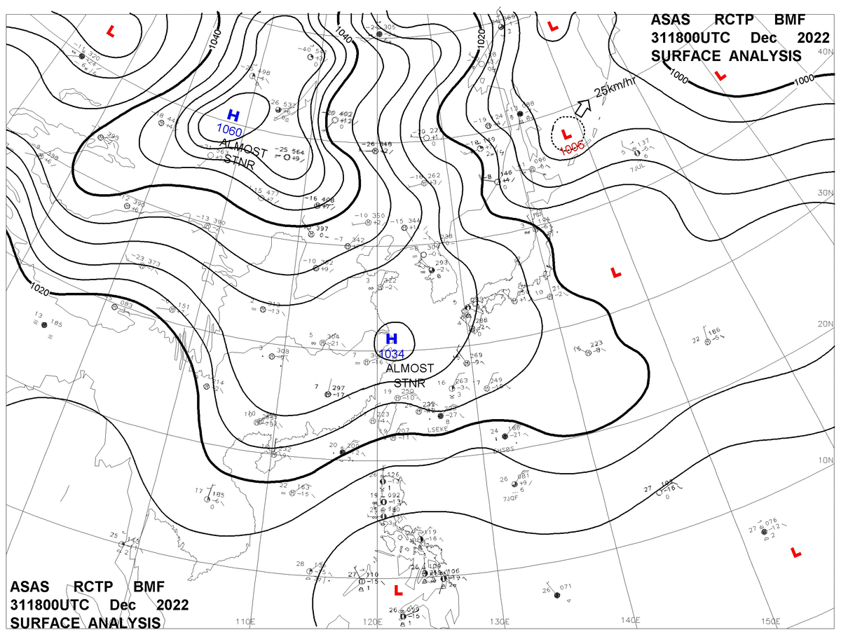 2022/12/31 18z sfcmap 天氣圖