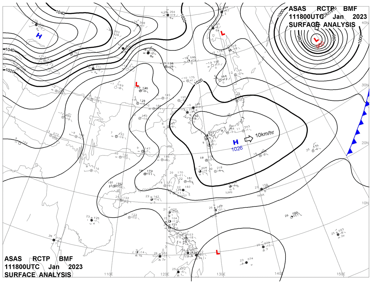2023/01/11 18z sfcmap 天氣圖