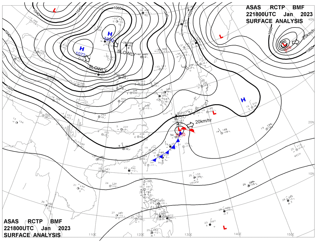 2023/01/22 18z sfcmap 天氣圖