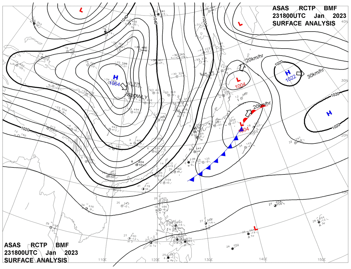 2023/01/23 18z sfcmap 天氣圖