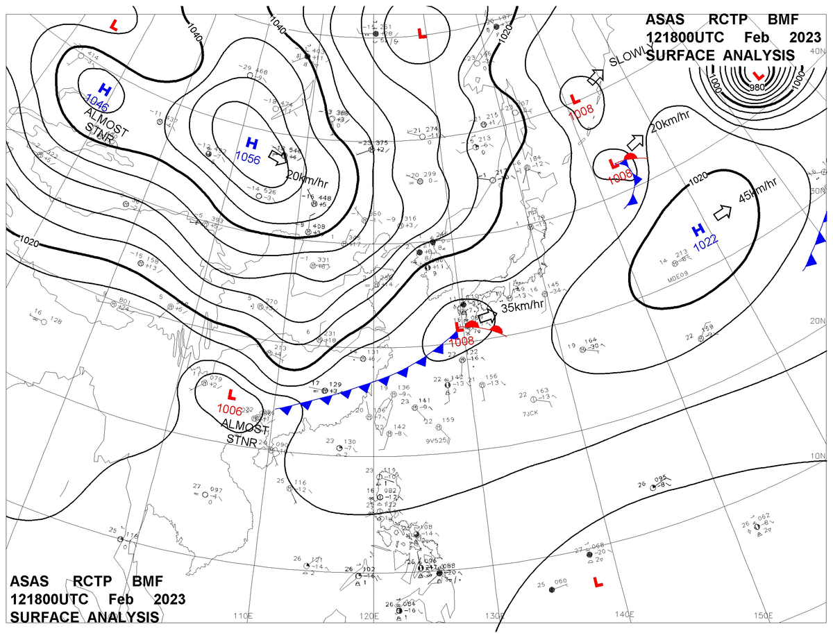 2023/02/12 18z sfcmap 天氣圖