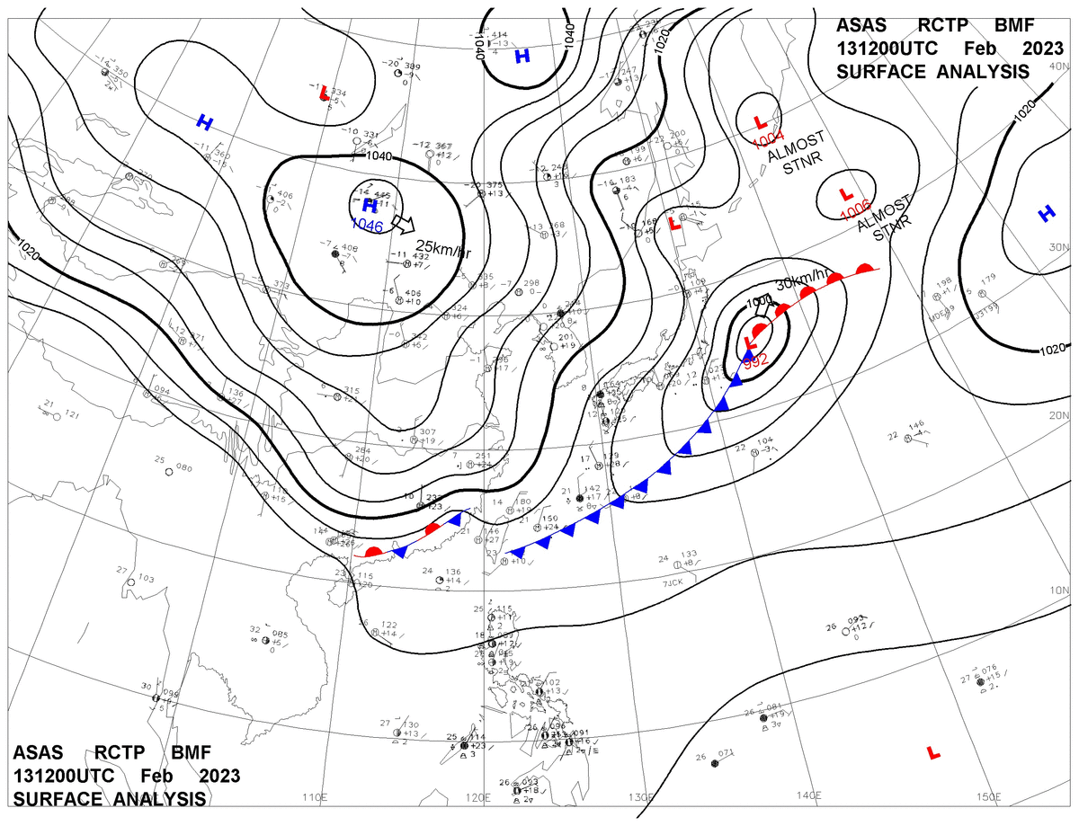 2023/02/13 12z sfcmap 天氣圖