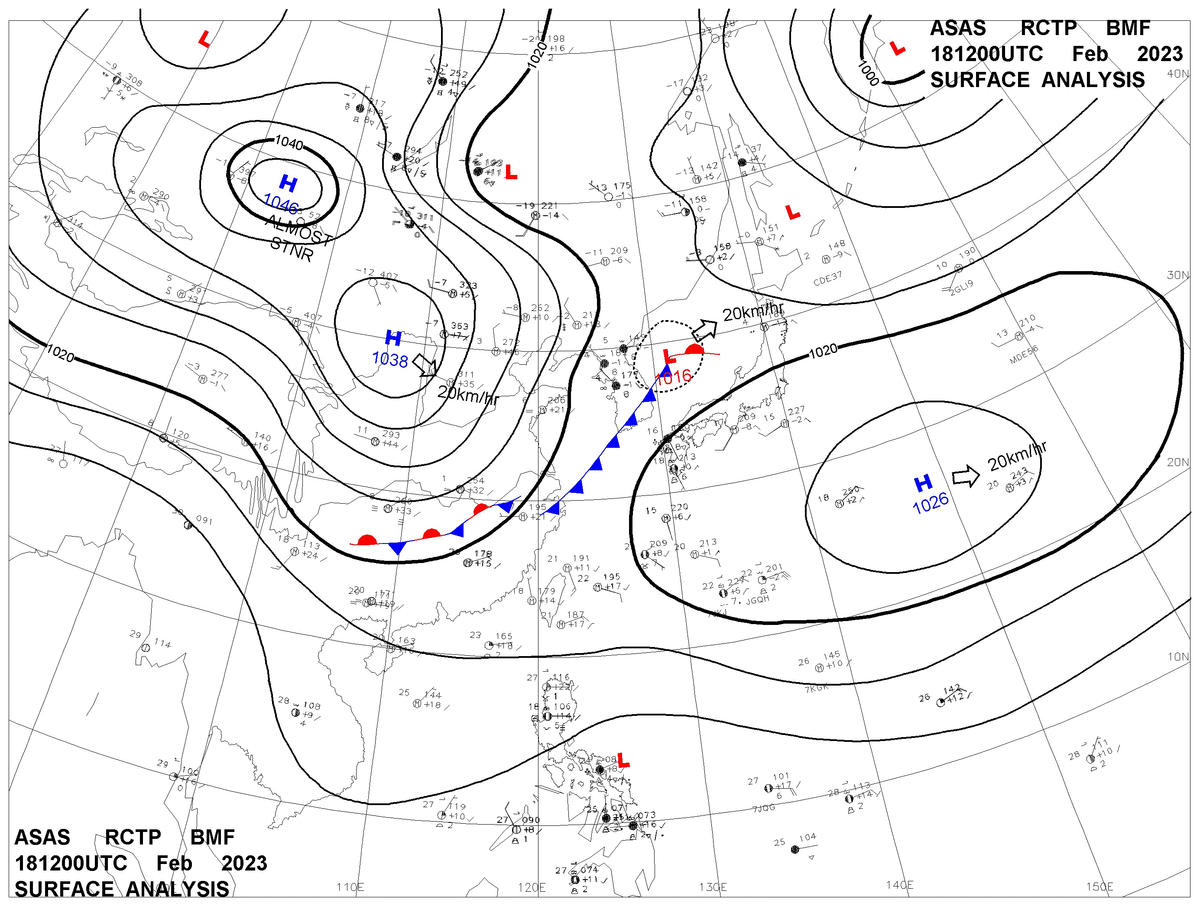 2023/02/18 12z sfcmap 天氣圖