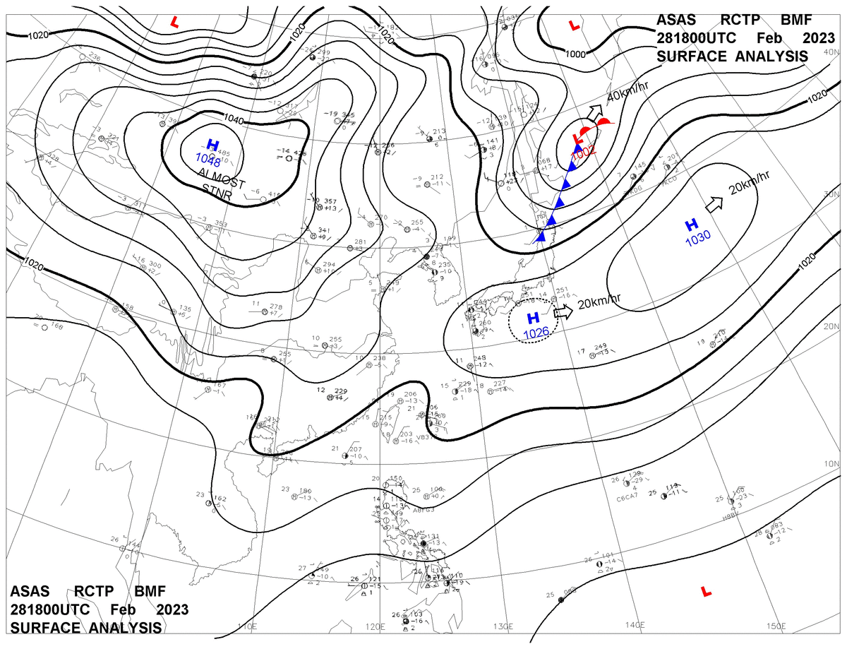 2023/02/28 18z sfcmap 天氣圖