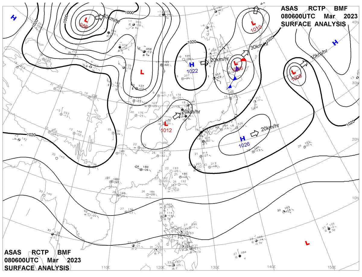 2023/03/08 06z sfcmap 天氣圖
