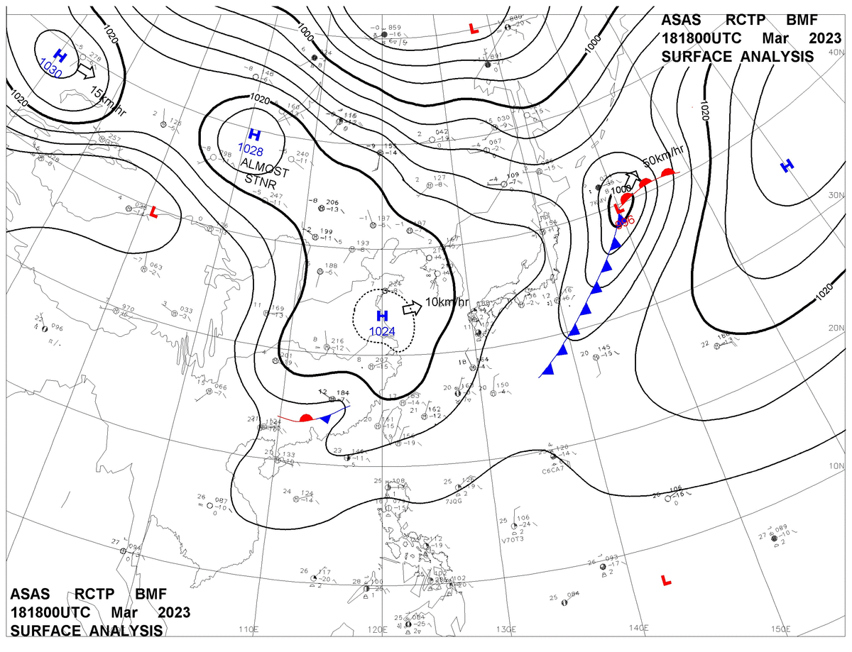 2023/03/18 18z sfcmap 天氣圖