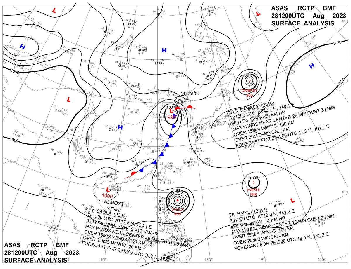 2023/08/28 12z sfcmap 天氣圖