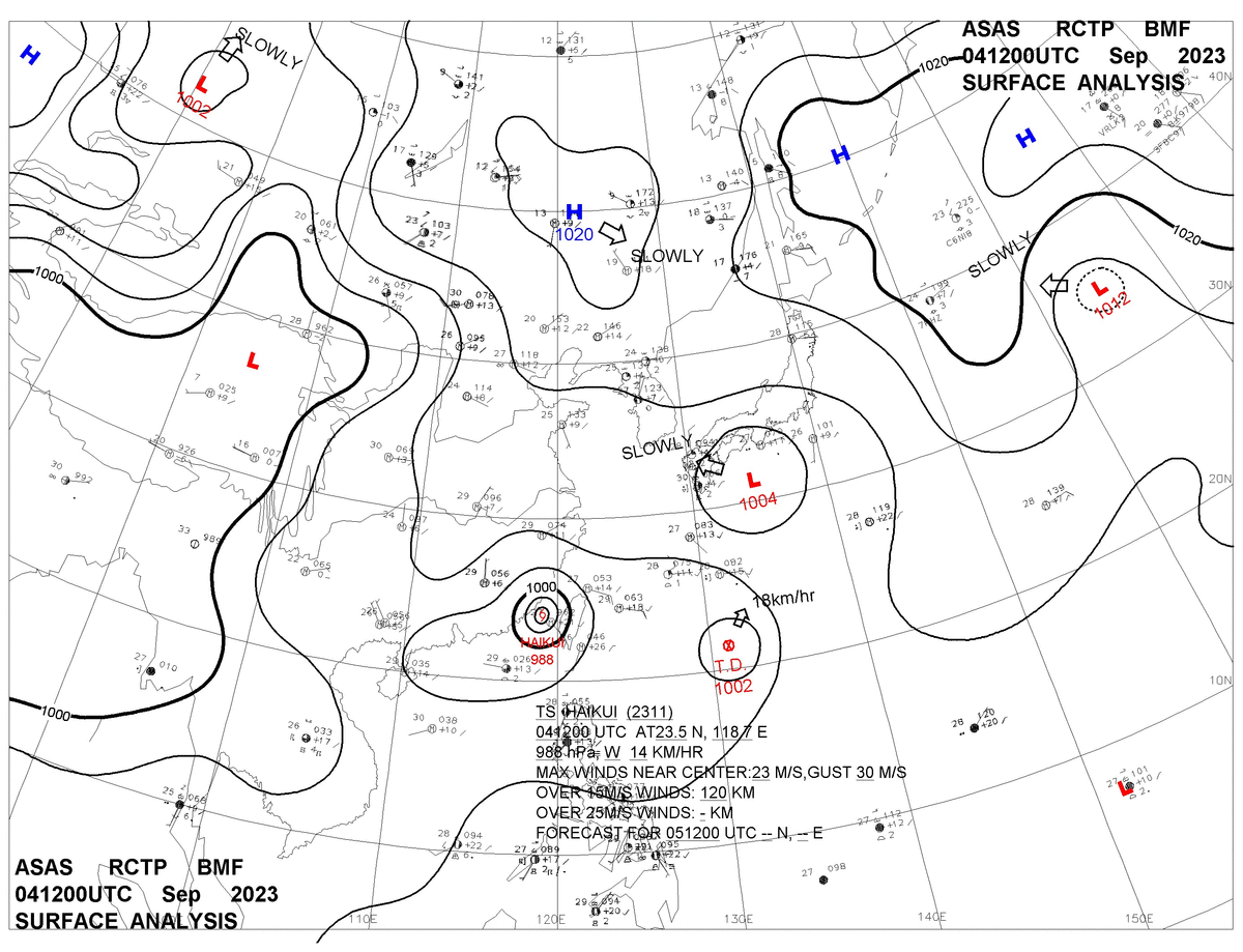 2023/09/04 12z sfcmap 天氣圖
