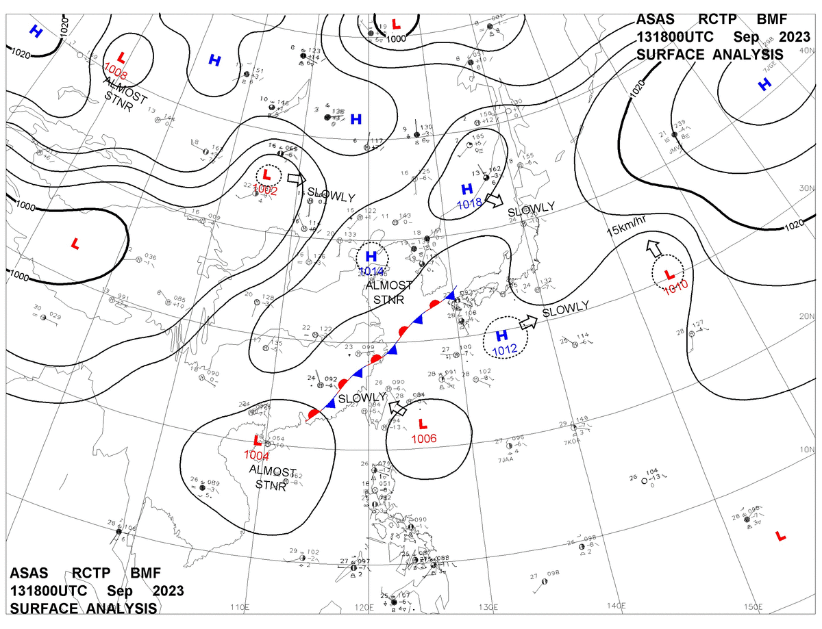 2023/09/13 18z sfcmap 天氣圖