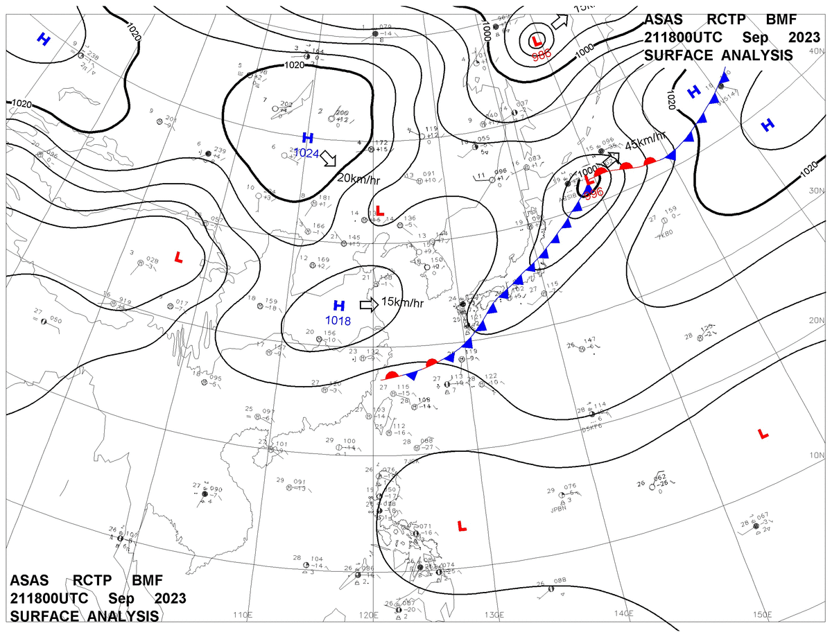 2023/09/21 18z sfcmap 天氣圖