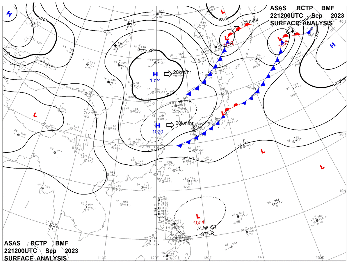 2023/09/22 12z sfcmap 天氣圖