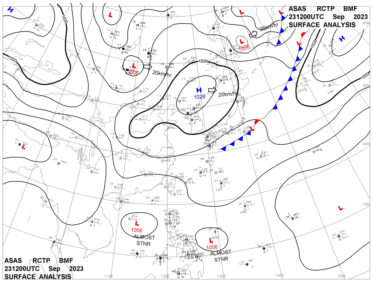 2023/09/23 12z sfcmap 天氣圖