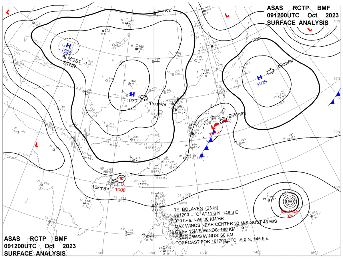 2023/10/09 12z sfcmap 天氣圖
