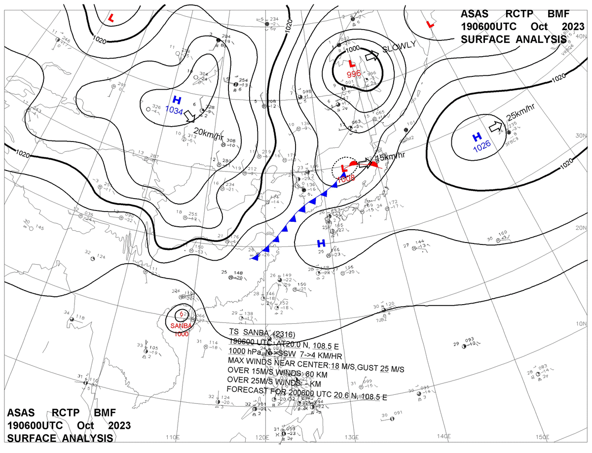2023/10/19 06z sfcmap 天氣圖