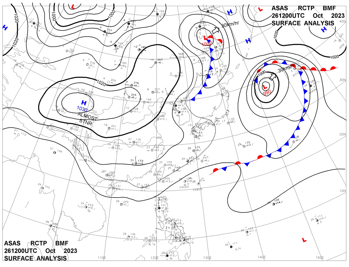 2023/10/26 12z sfcmap 天氣圖