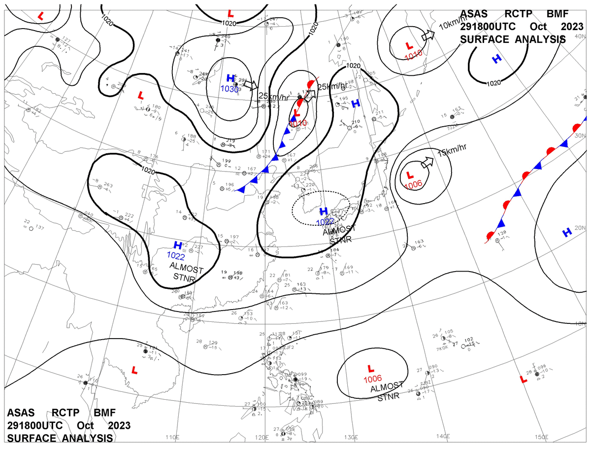 2023/10/29 18z sfcmap 天氣圖