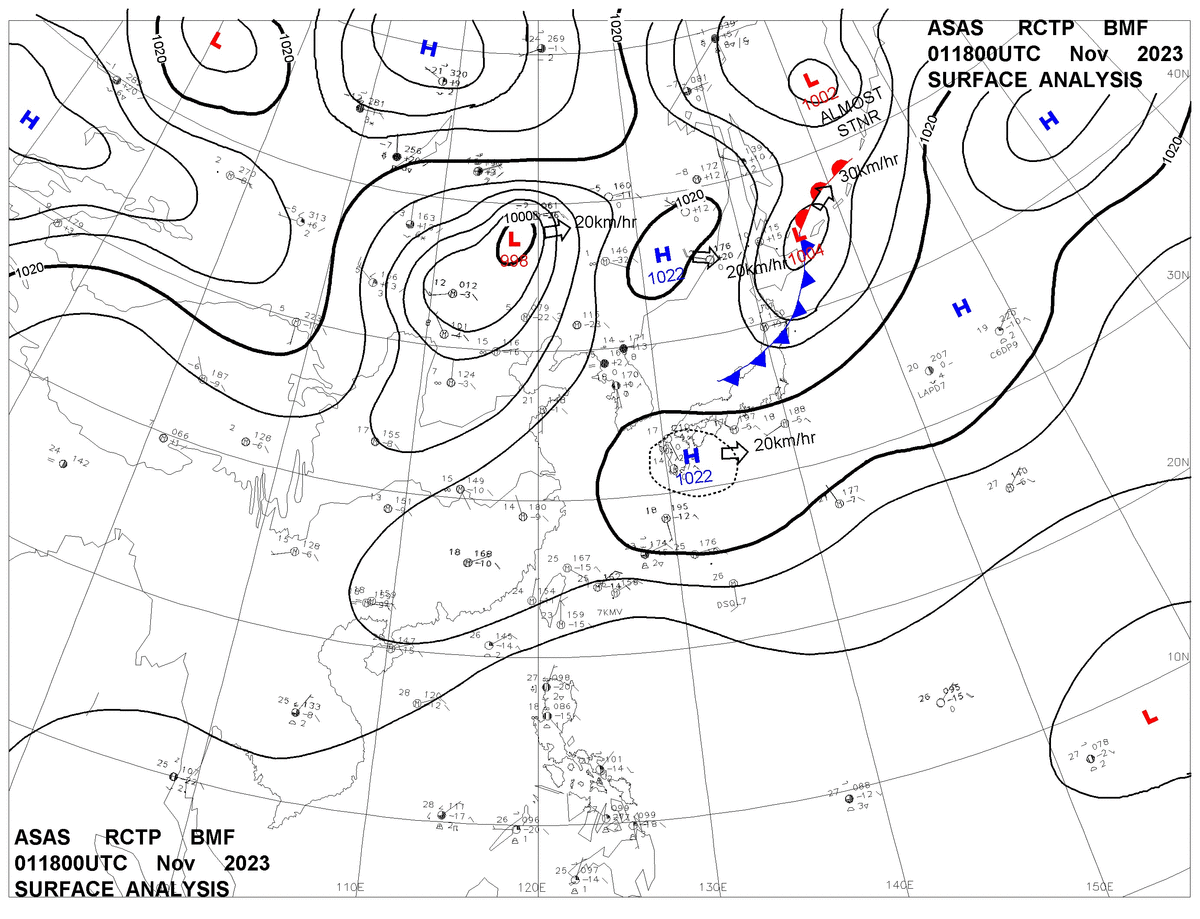 2023/11/01 18z sfcmap 天氣圖