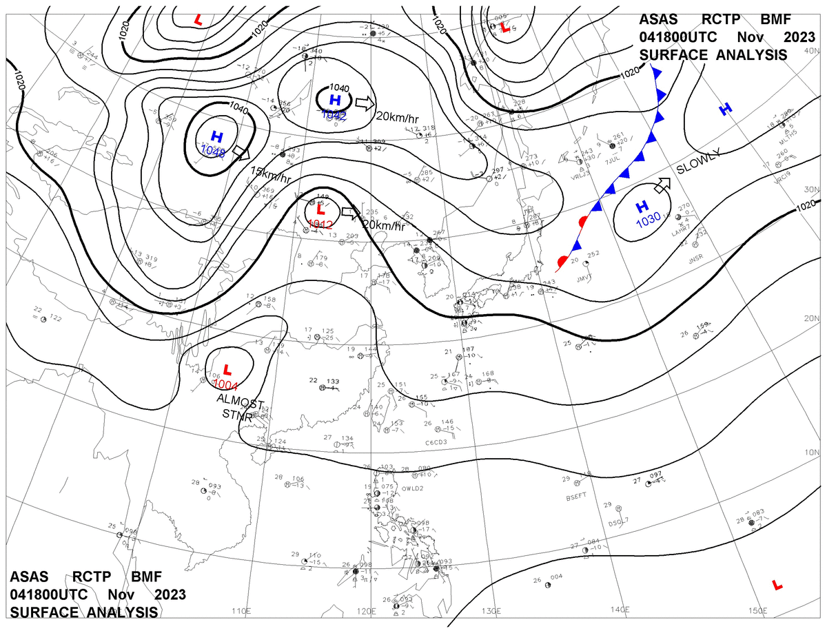 2023/11/04 18z sfcmap 天氣圖