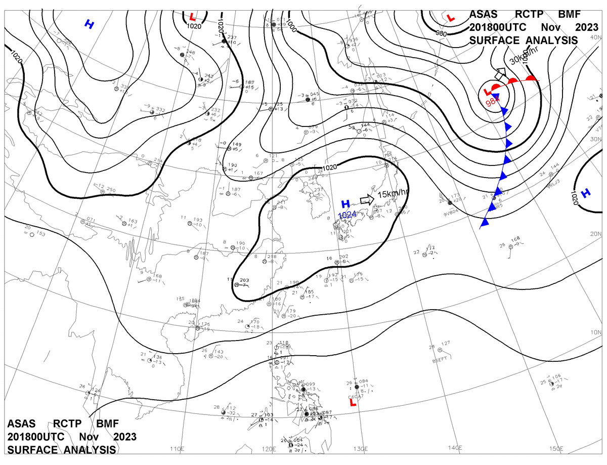 2023/11/20 18z sfcmap 天氣圖