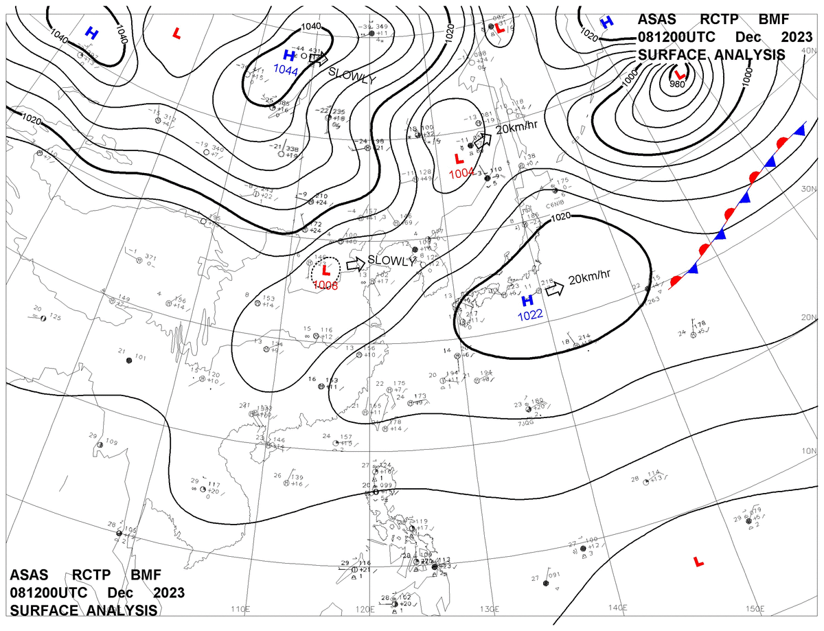 2023/12/08 12z sfcmap 天氣圖