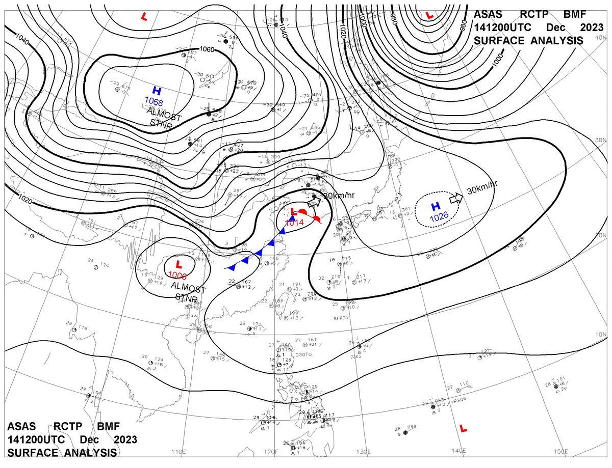 2023/12/14 12z sfcmap 天氣圖