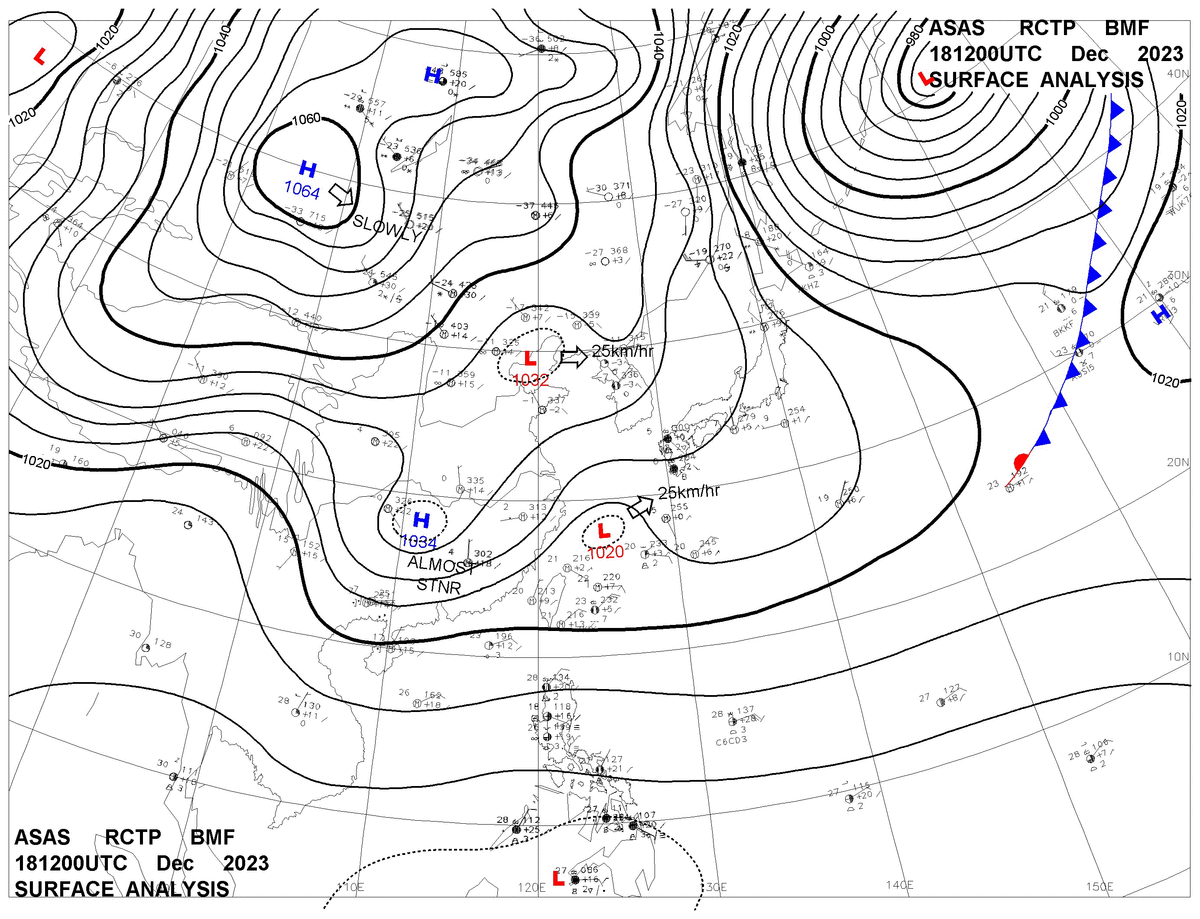 2023/12/18 12z sfcmap 天氣圖