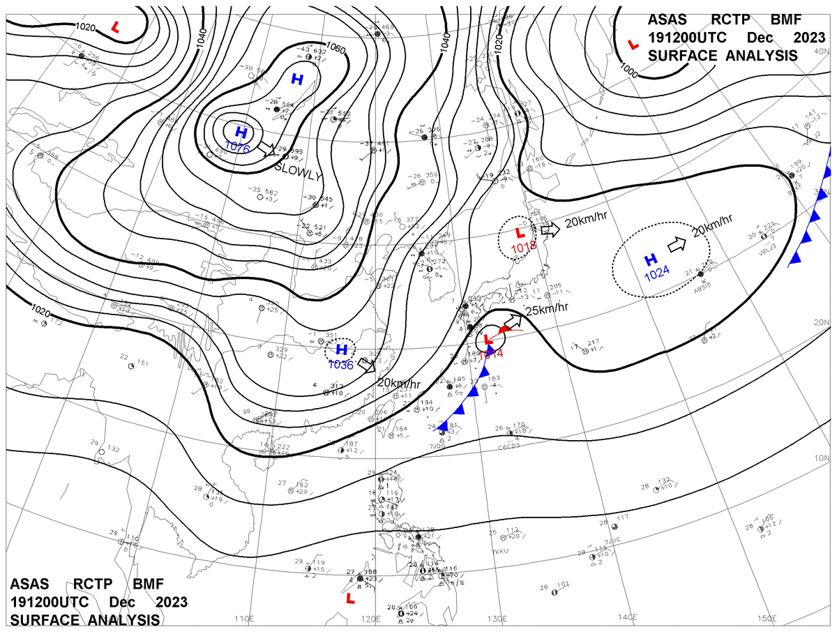 2023/12/19 12z sfcmap 天氣圖