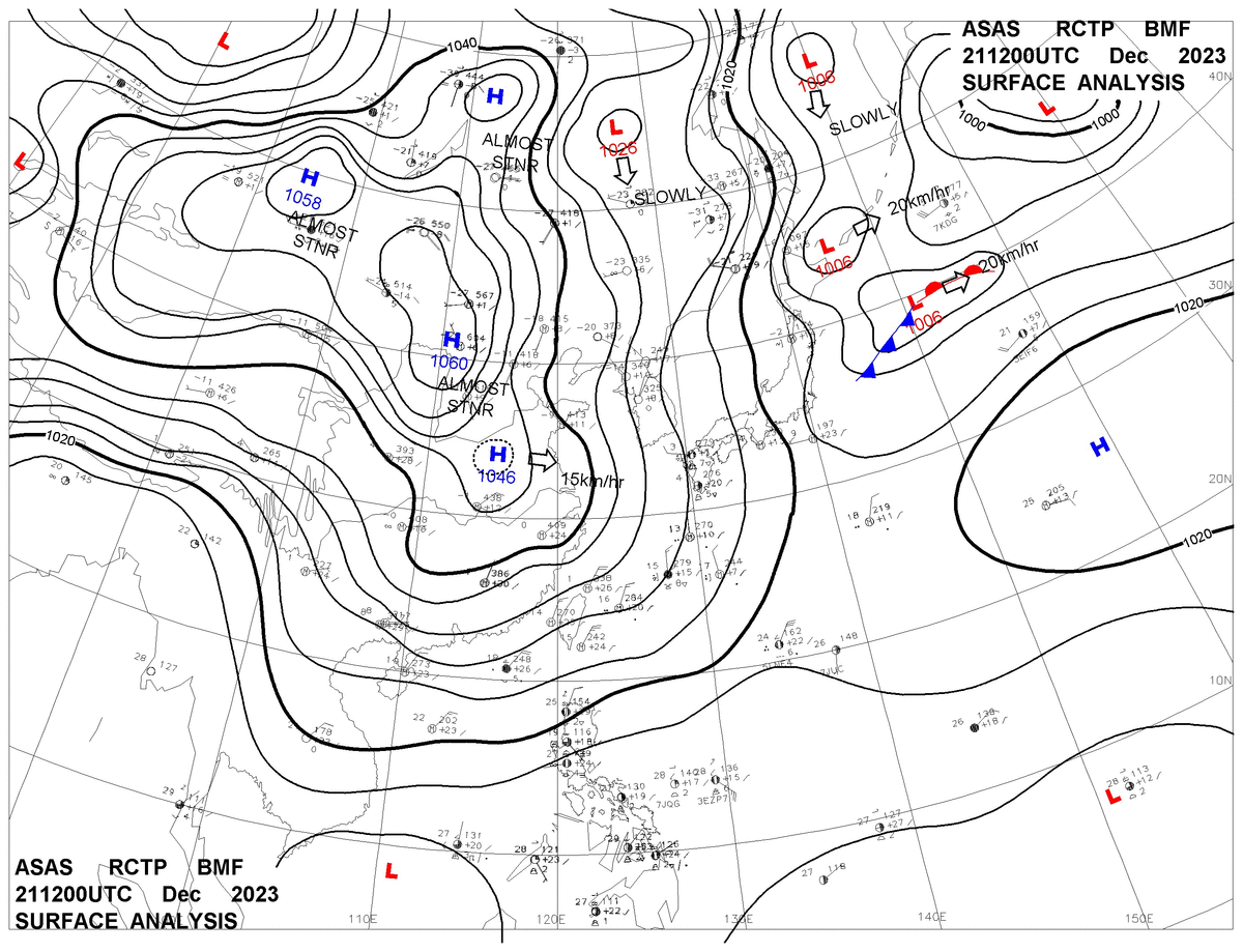 2023/12/21 12z sfcmap 天氣圖