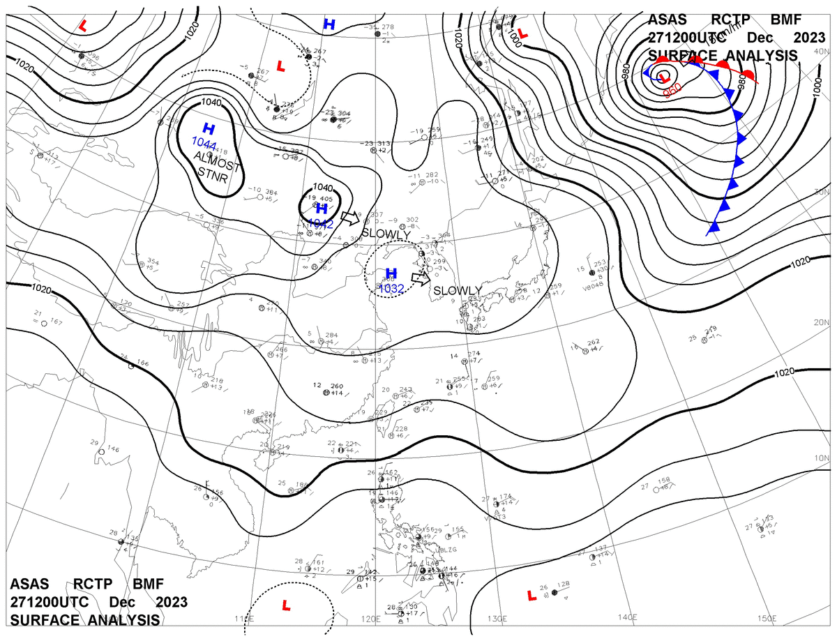 2023/12/27 12z sfcmap 天氣圖