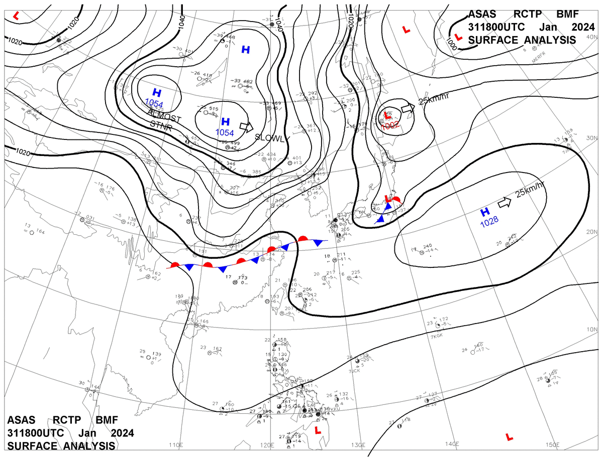 2024/01/31 18z sfcmap 天氣圖