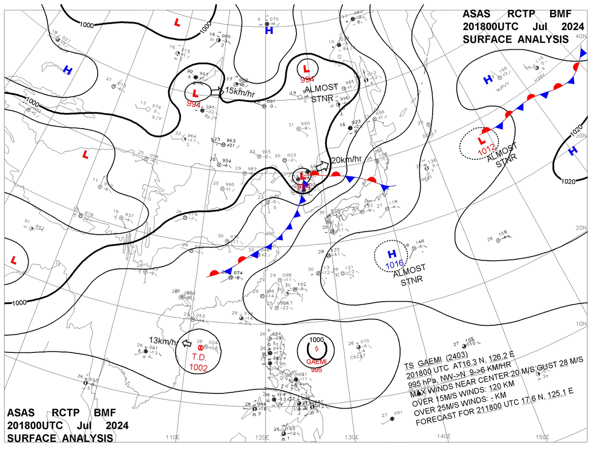 2024/07/20 18z sfcmap 天氣圖