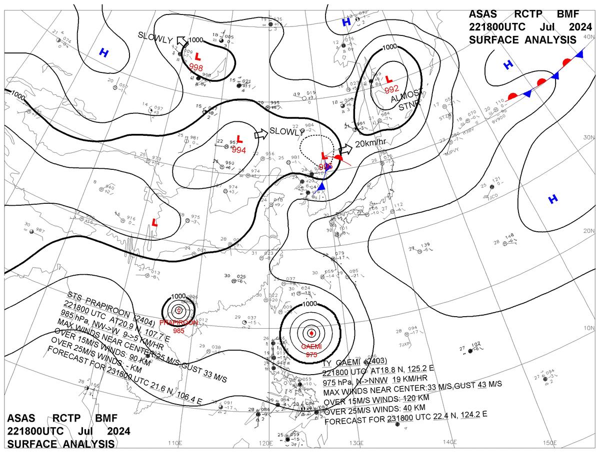 2024/07/22 18z sfcmap 天氣圖