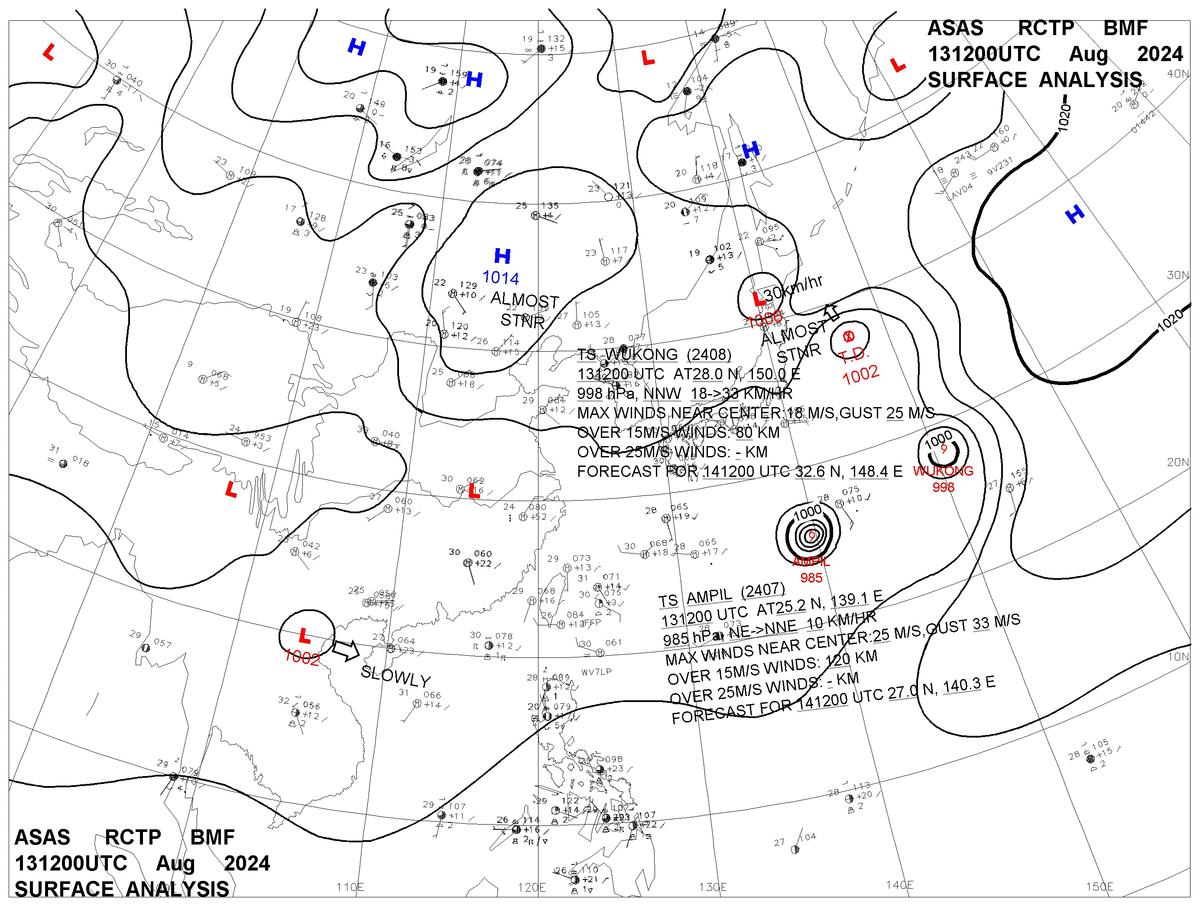 2024/08/13 12z sfcmap 天氣圖