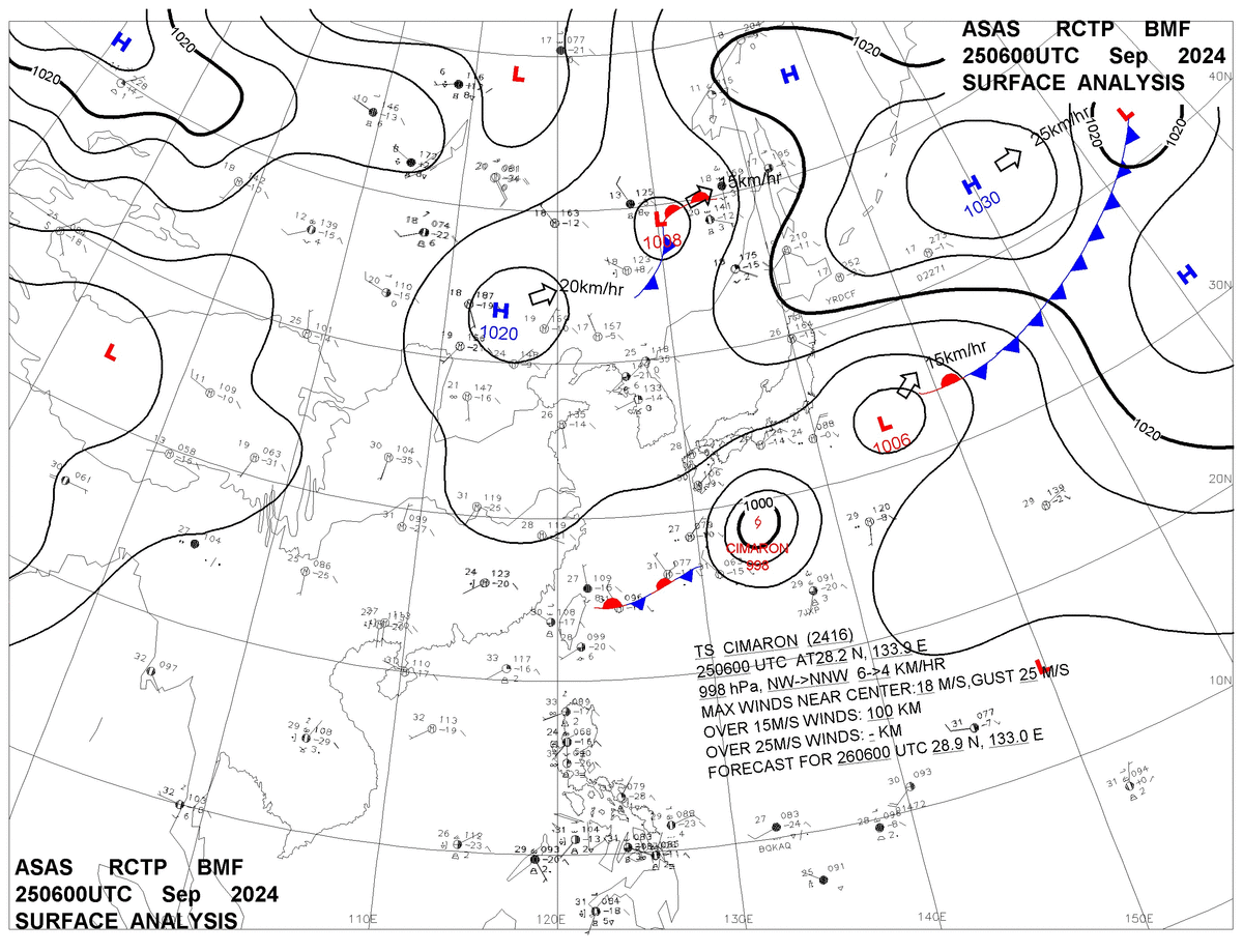 2024/09/25 06z sfcmap 天氣圖