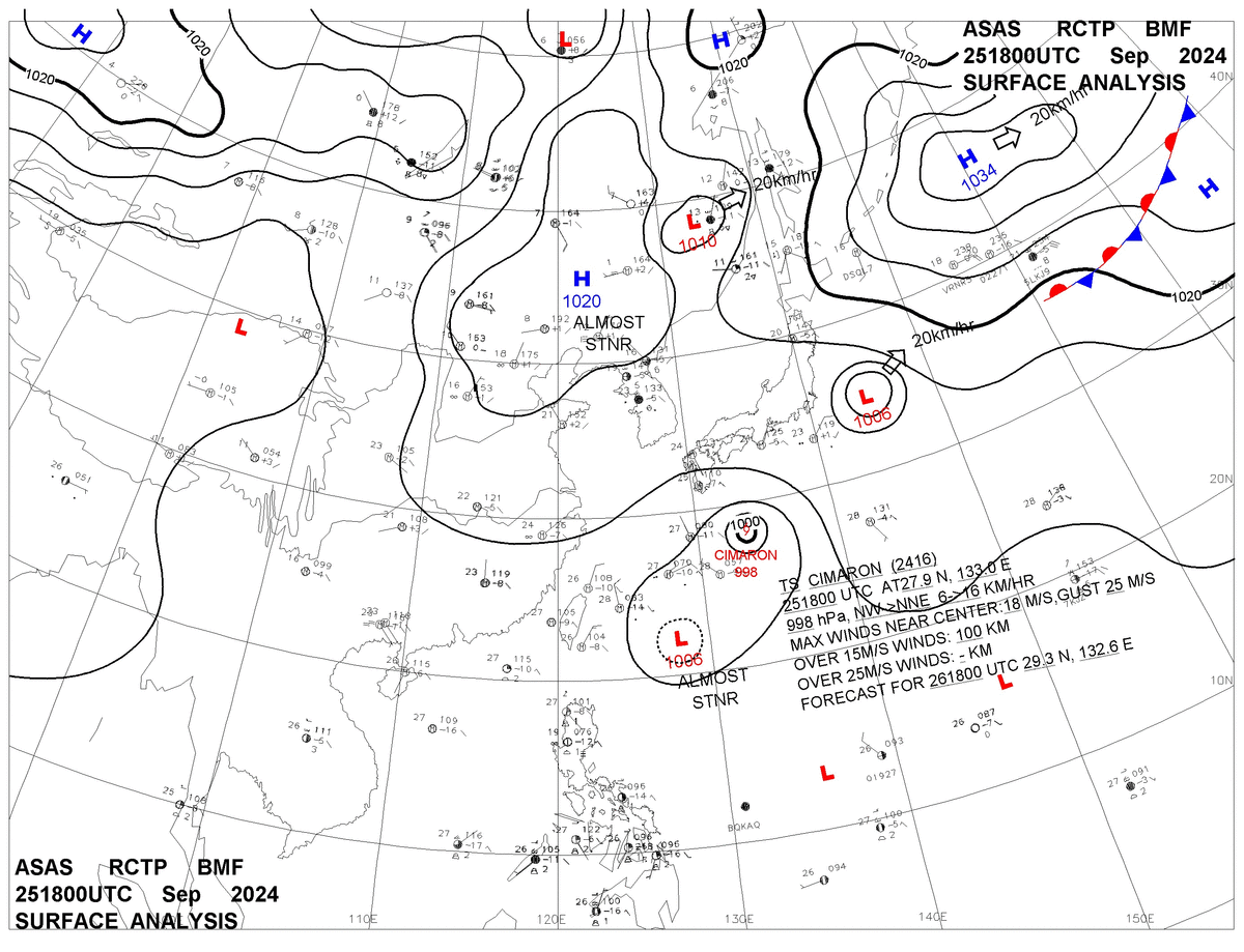 2024/09/25 18z sfcmap 天氣圖