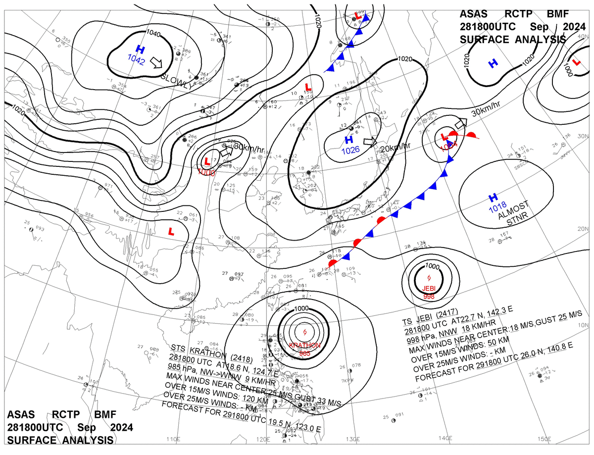 2024/09/28 18z sfcmap 天氣圖