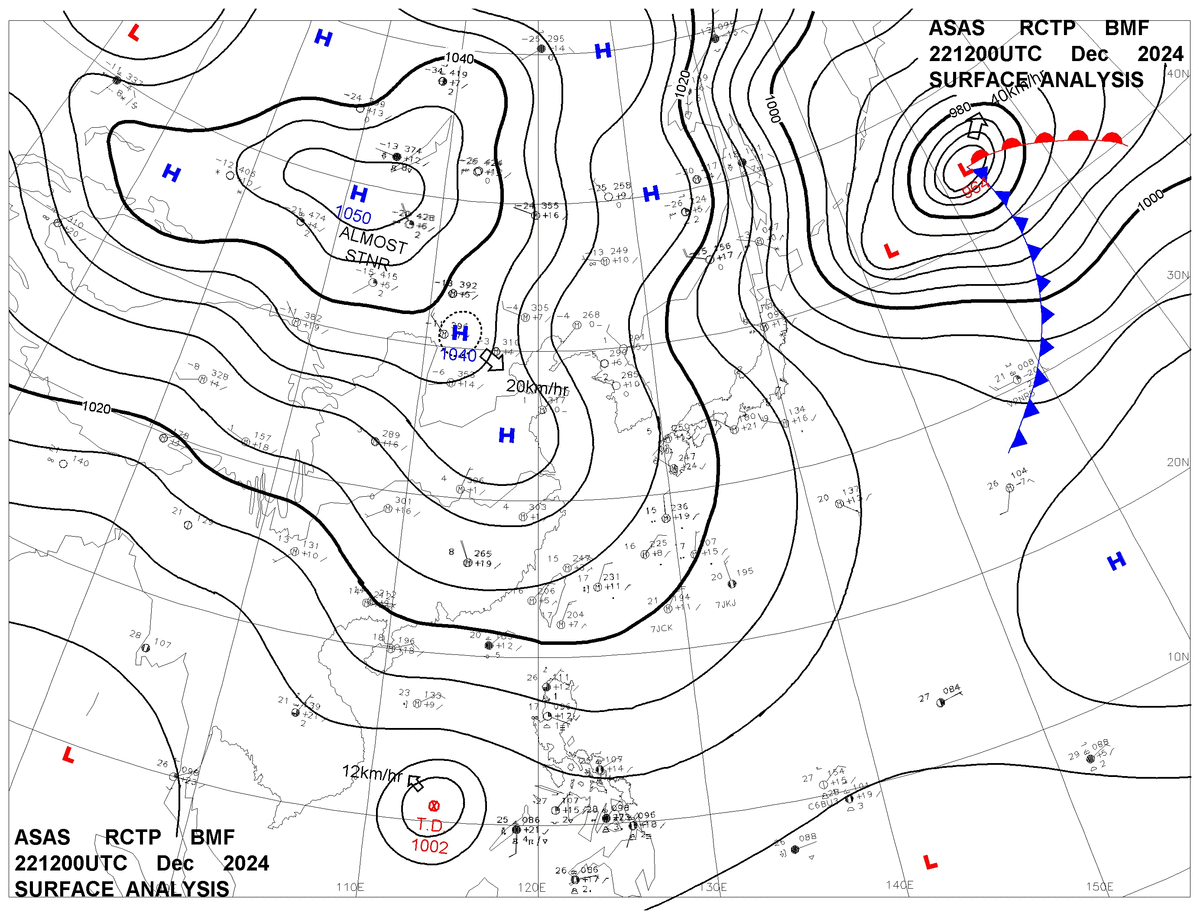 2024/12/22 12z sfcmap 天氣圖