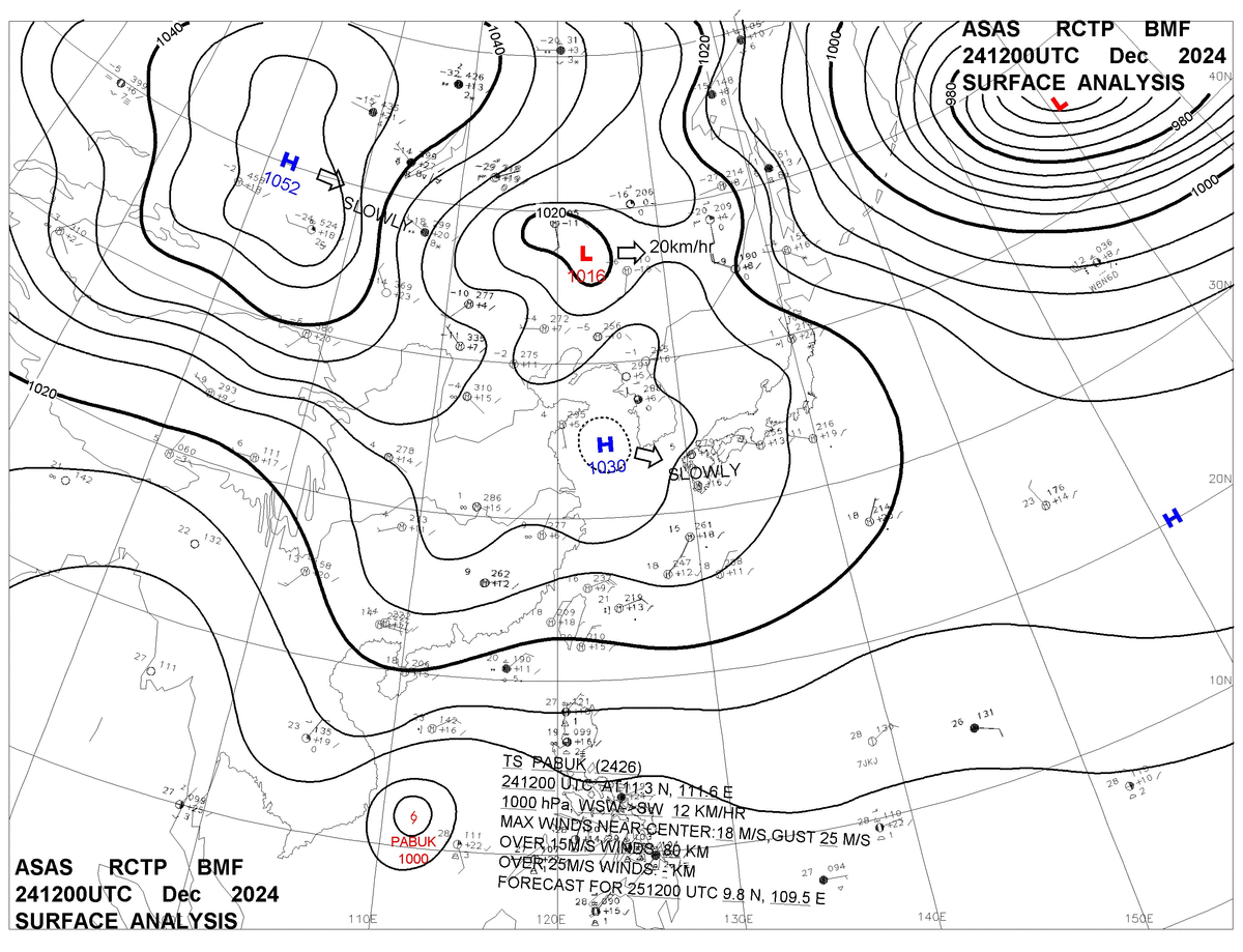 2024/12/24 12z sfcmap 天氣圖