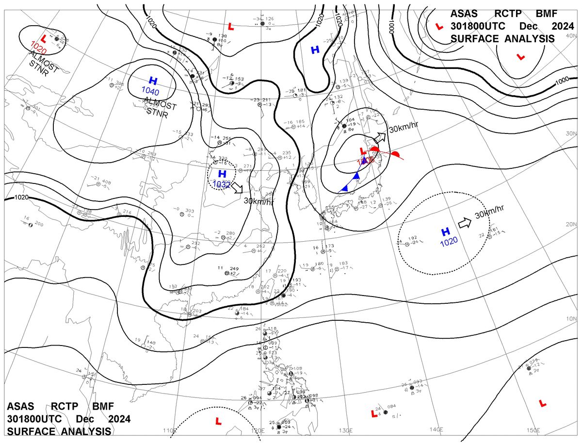 2024/12/30 18z sfcmap 天氣圖