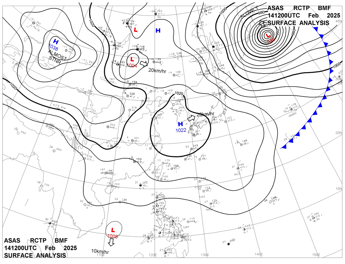 2025/02/14 12z sfcmap 天氣圖