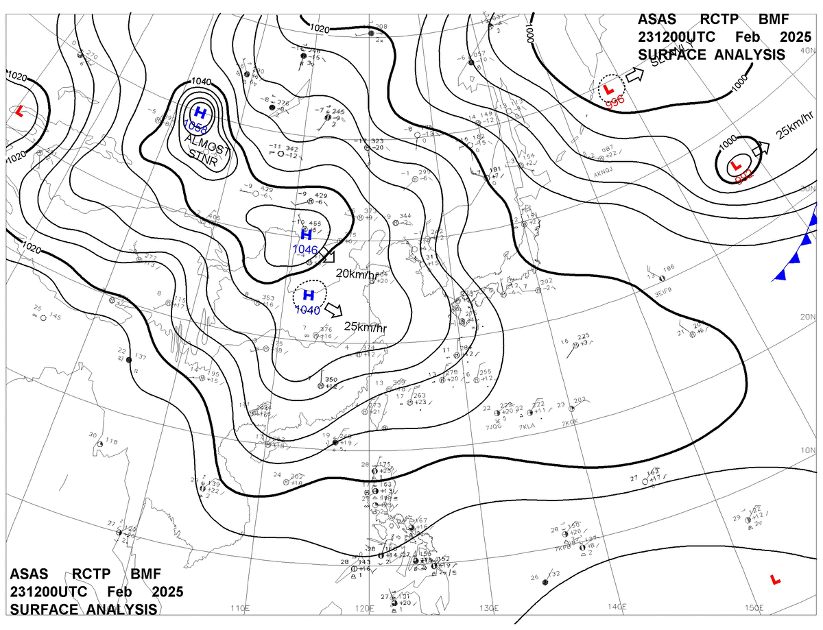 2025/02/23 12z sfcmap 天氣圖