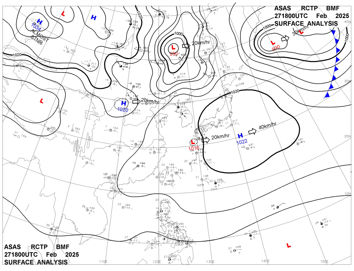 2025/02/27 18z sfcmap 天氣圖