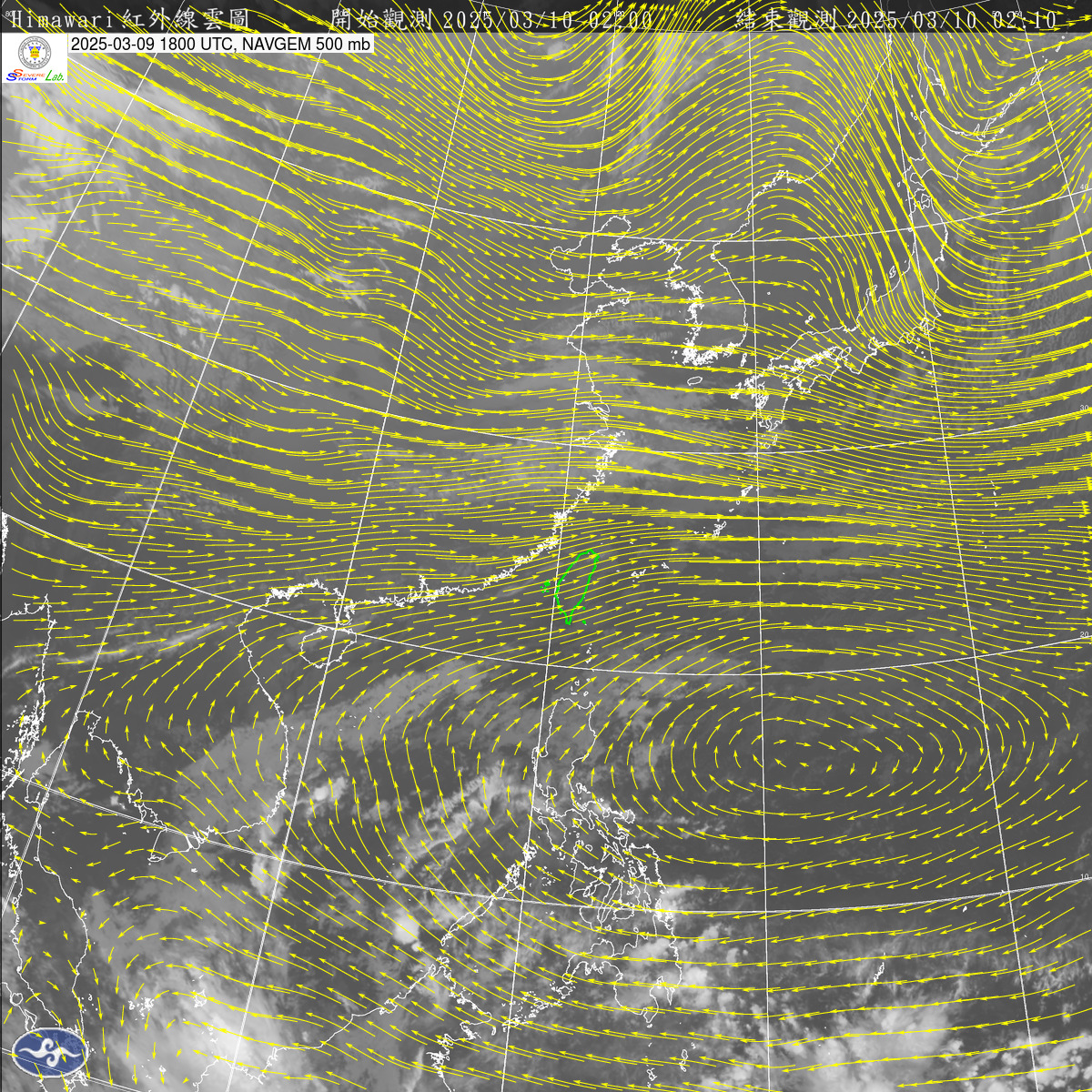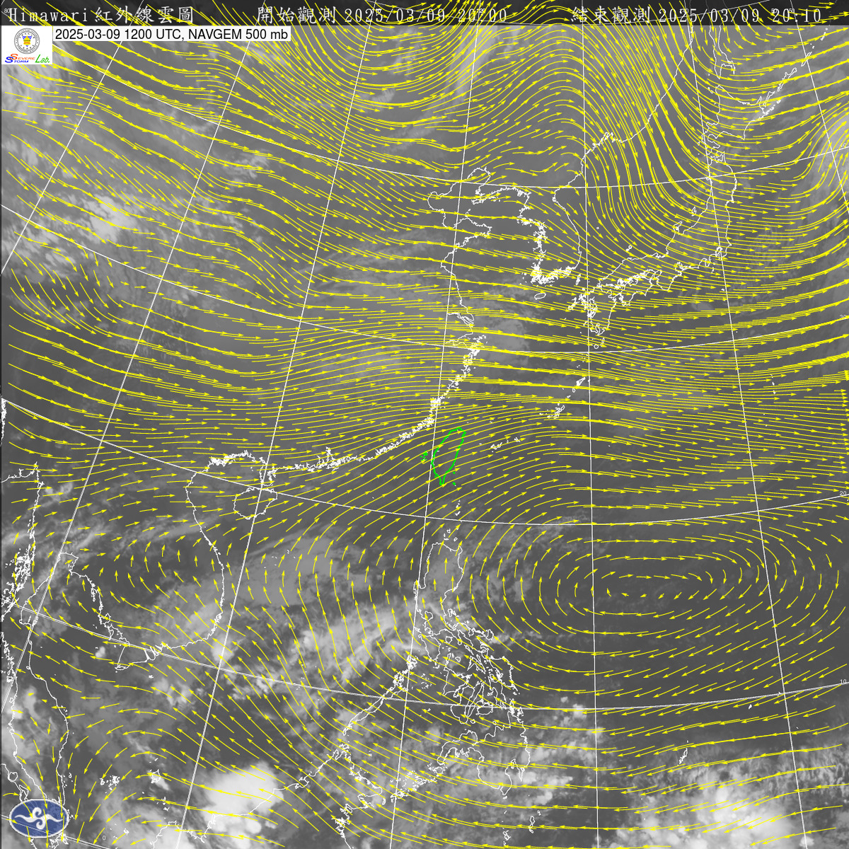 2025-03-09 00 UTC 紅外線+500mb風場