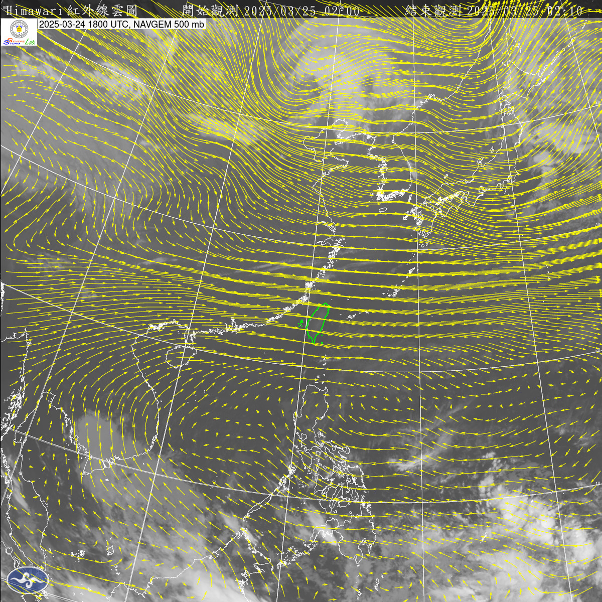 2025-03-24 00 UTC 紅外線+500mb風場