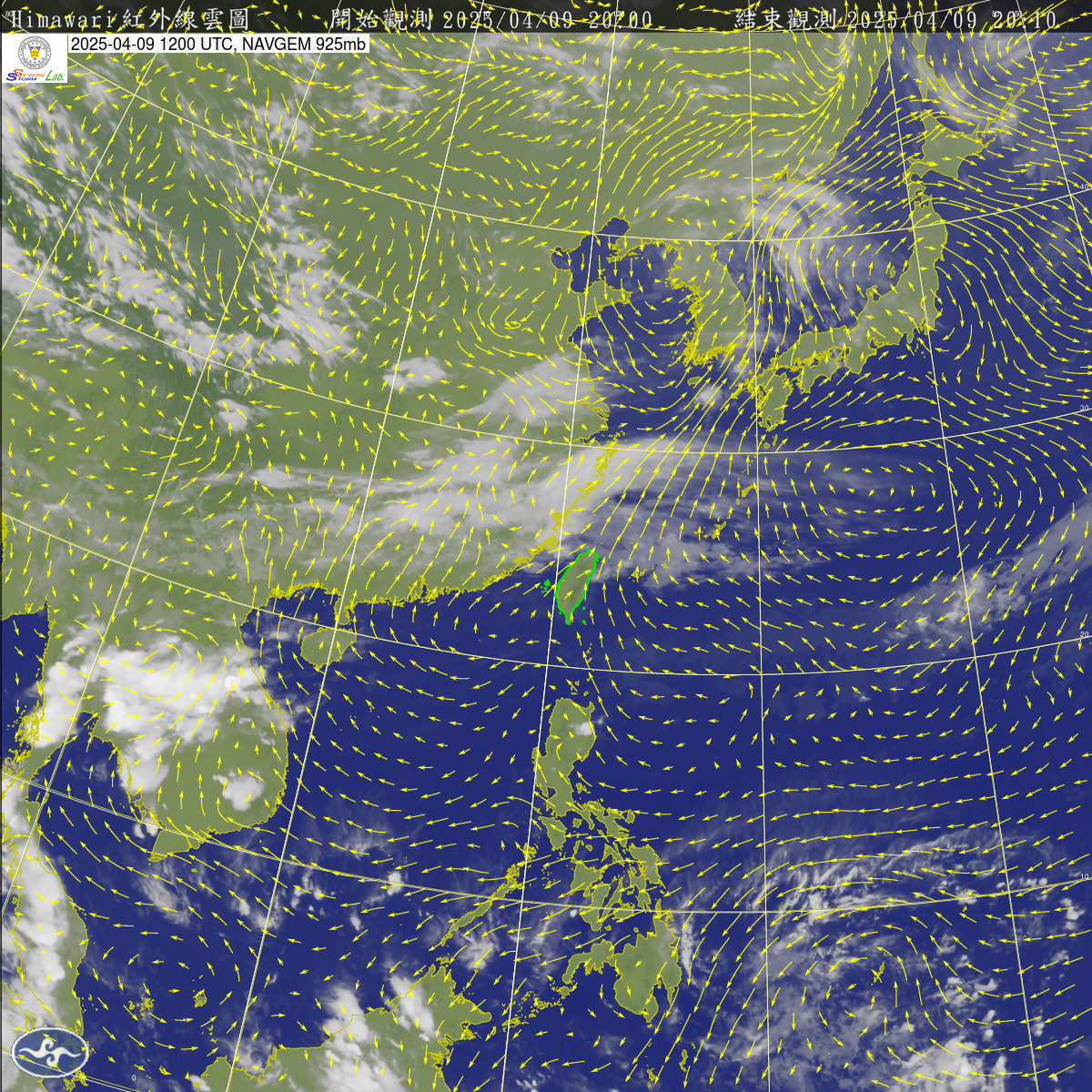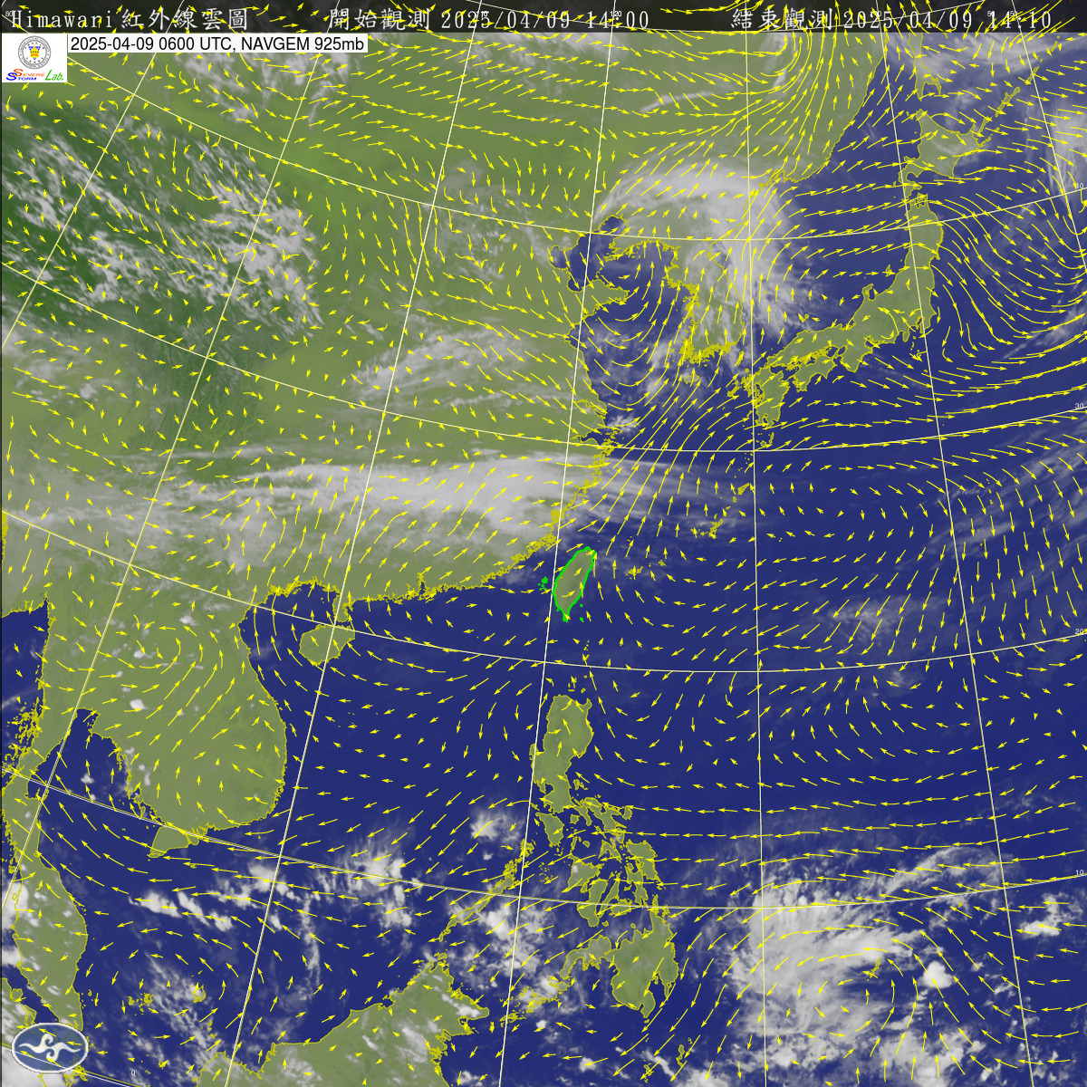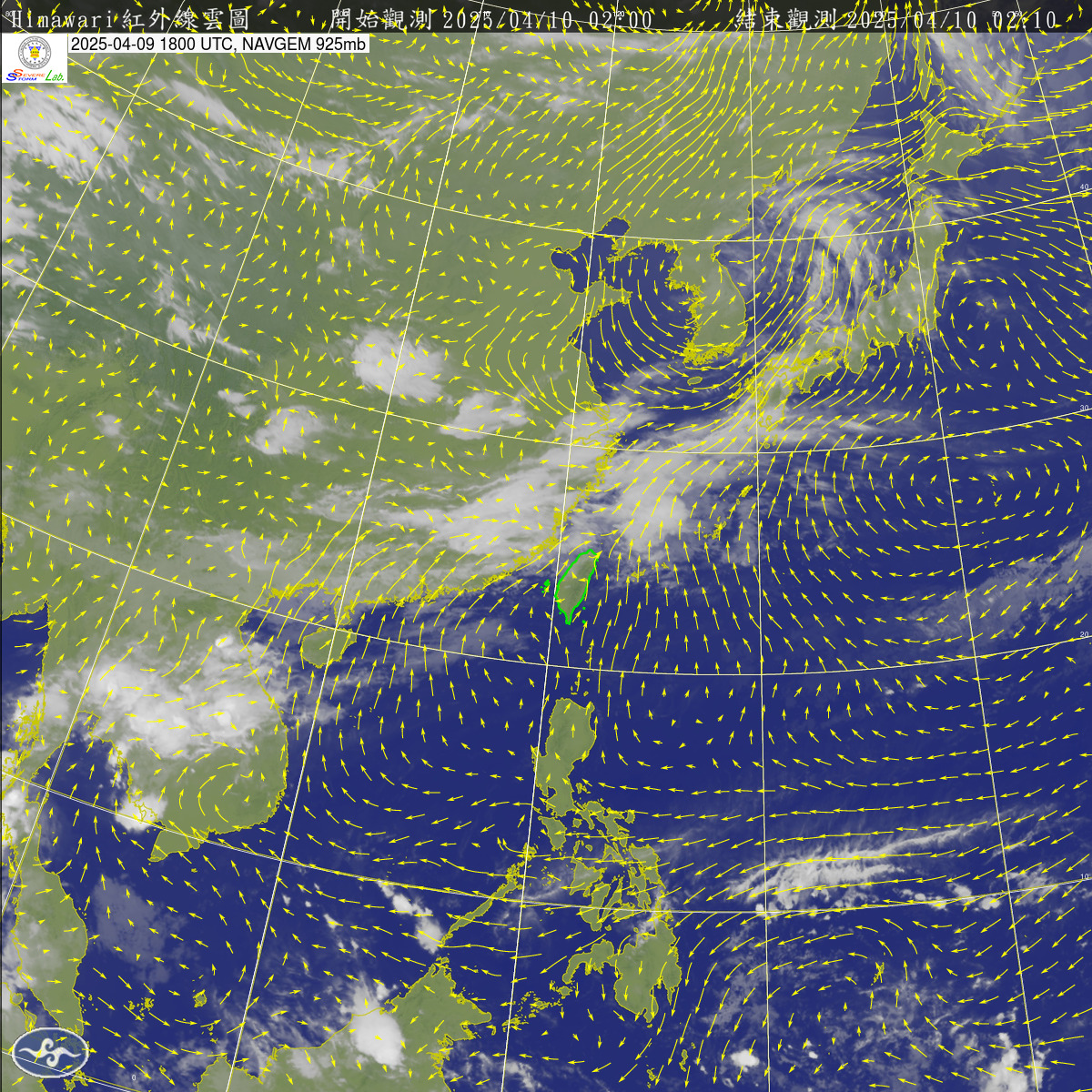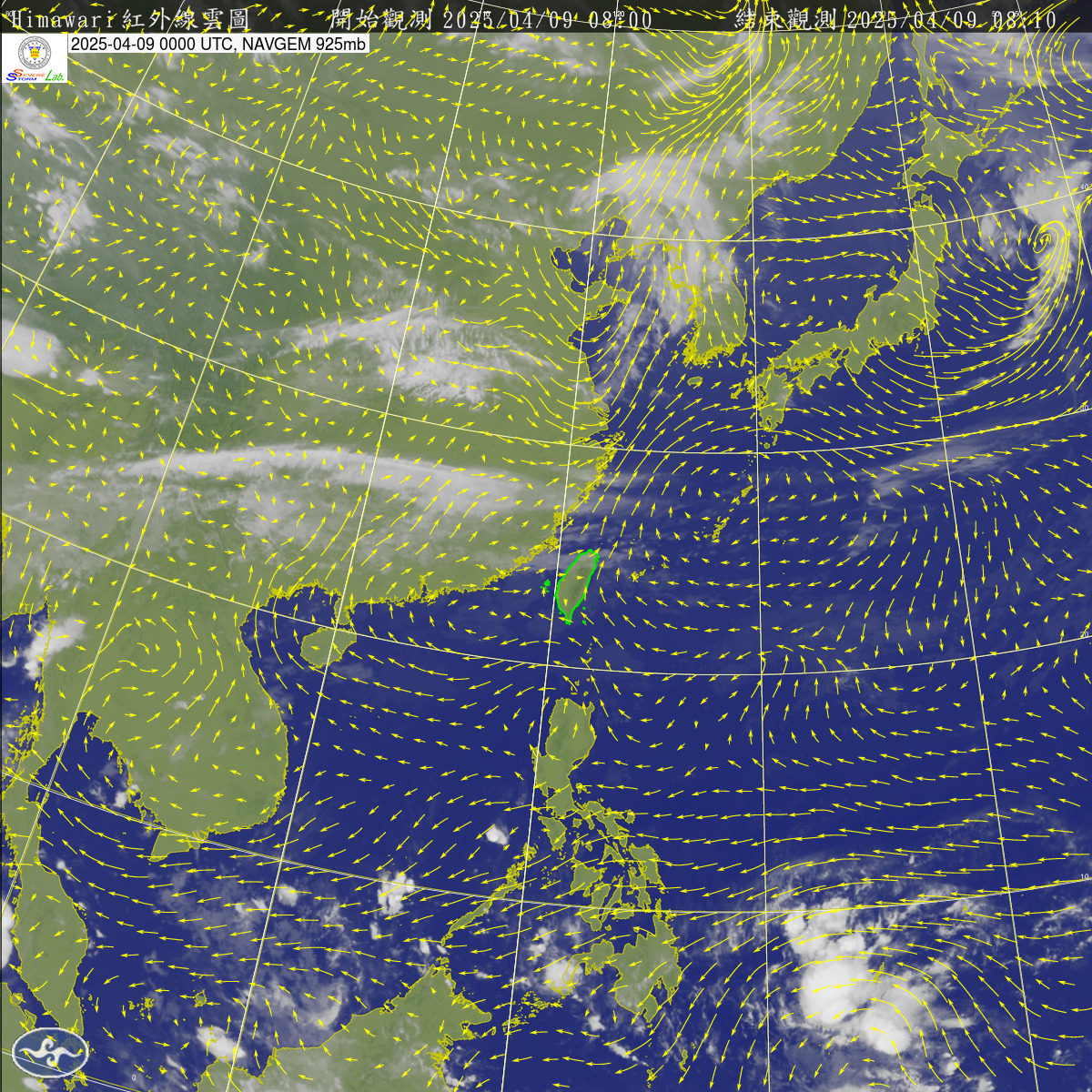 2025-04-09 00 UTC 紅外線+925mb風場