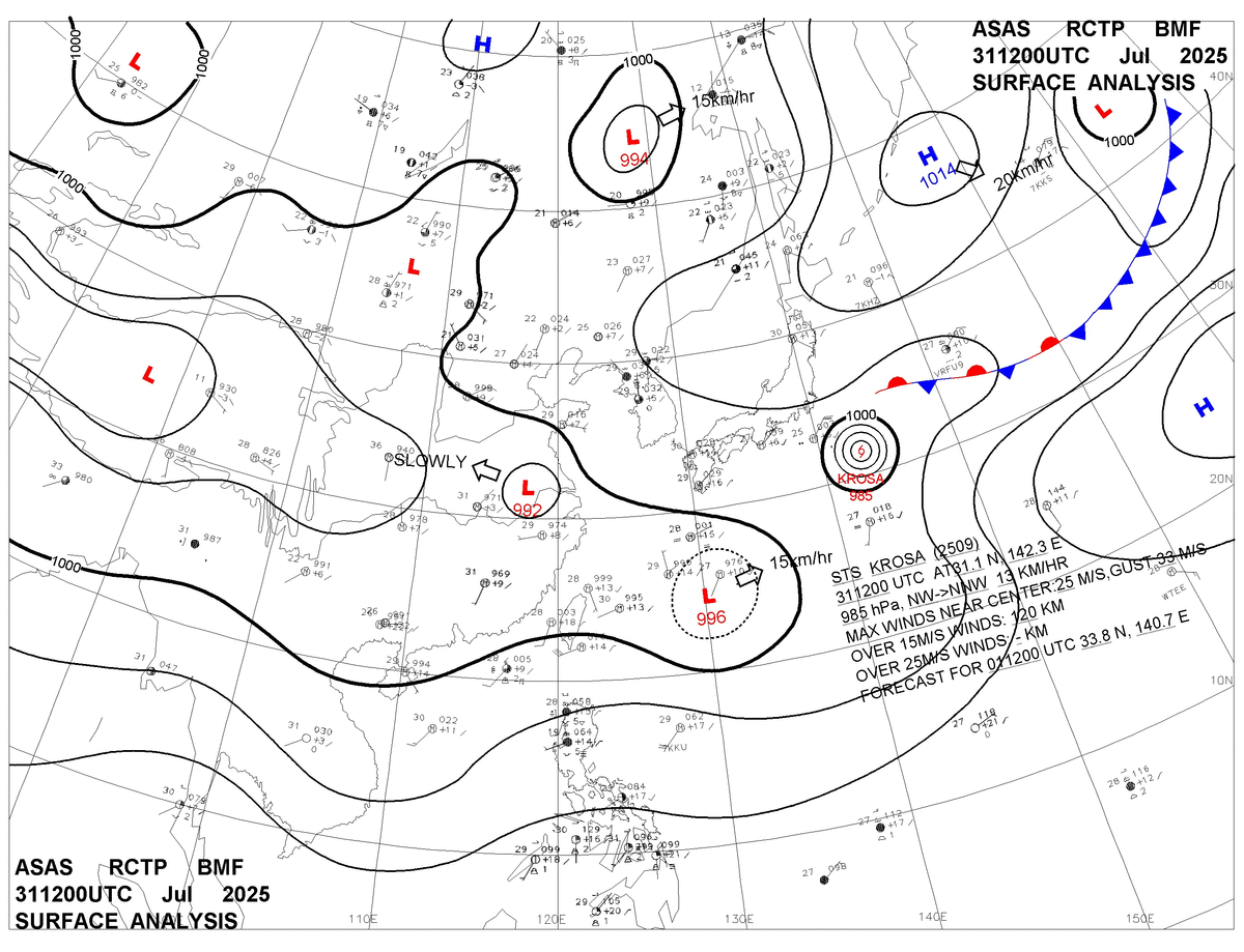 2025/07/31 12z sfcmap 天氣圖