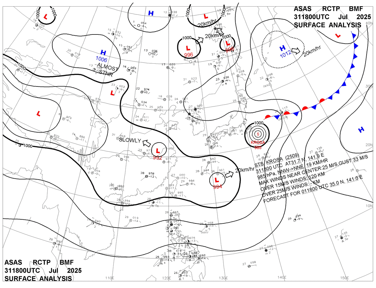 2025/07/31 18z sfcmap 天氣圖